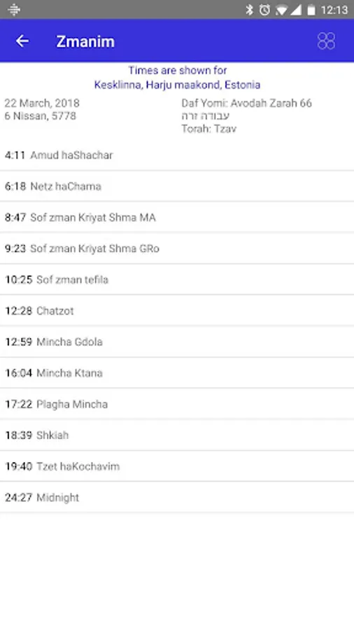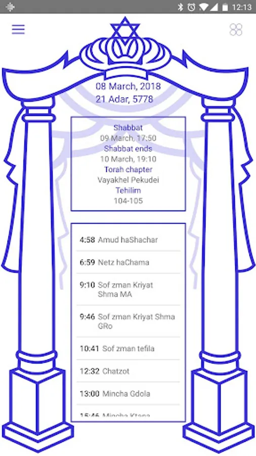 from time to time (Zmanim) for this day. More on the main page you can with just one touch go to today's section tehilim or humash.
