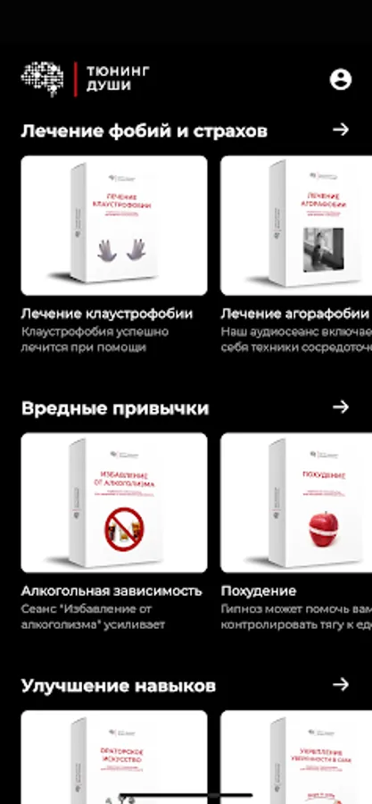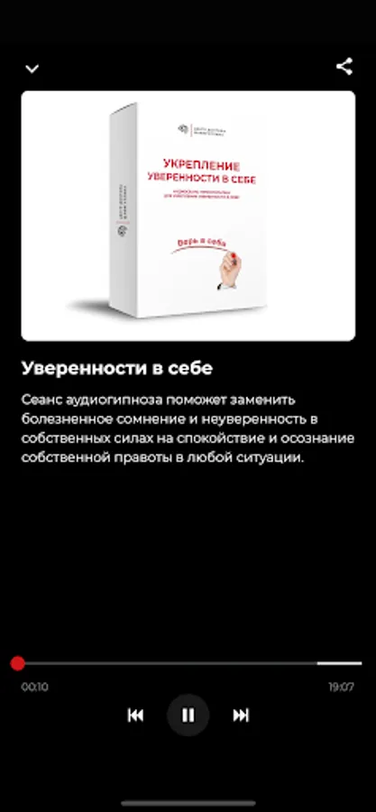 In the application you will find thematic hypnosis audio sessions available by subscription: anti-stress, life without depression, panic attacks, phobias and fears, healthy sleep, fairy tale therapy for children. As well as motivational hypnotherapy for athletes and people who want to believe in themselves again. Install our application today and return to an active life filled with joy and success.