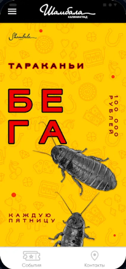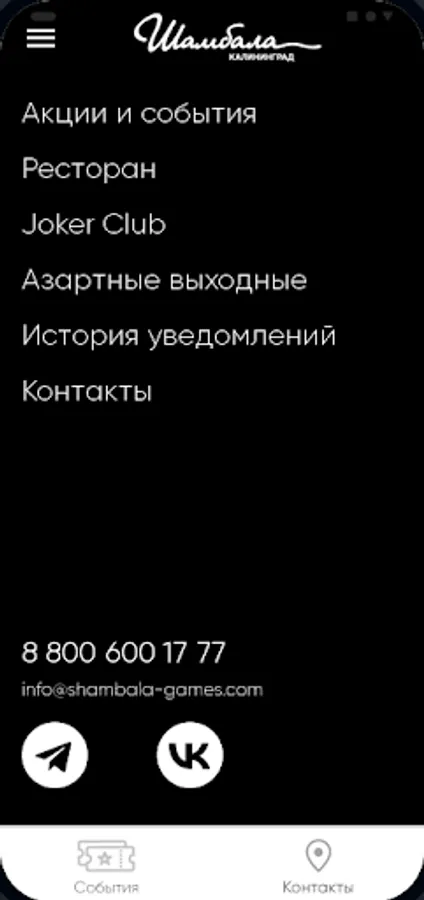 The application allows you to get acquainted with the schedule of events, promotions, games and tournaments of the Shambhala casino in Kaliningrad.