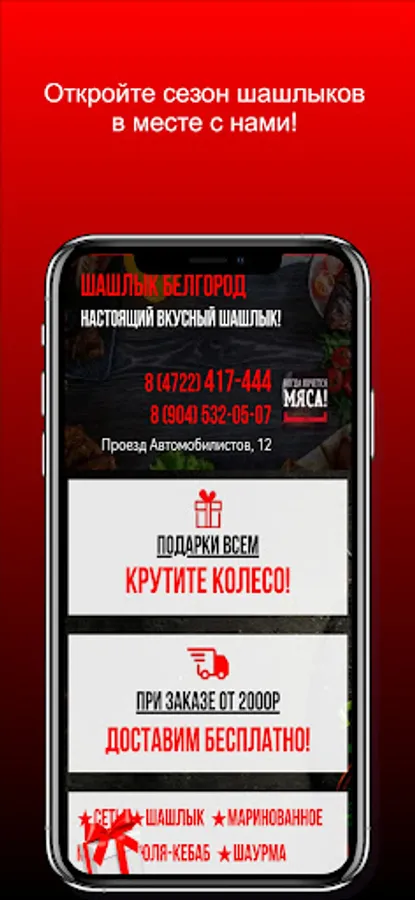 High-quality shish kebab and excellent mood are guaranteed! Order a barbecue with delivery and enjoy the taste without a headache! Our chef will prepare the juiciest pieces of meat with original spices. We are sure it will become your favorite food!