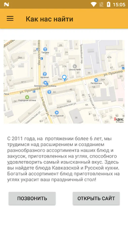 In our application you can order dishes of Caucasian and Russian cuisine.