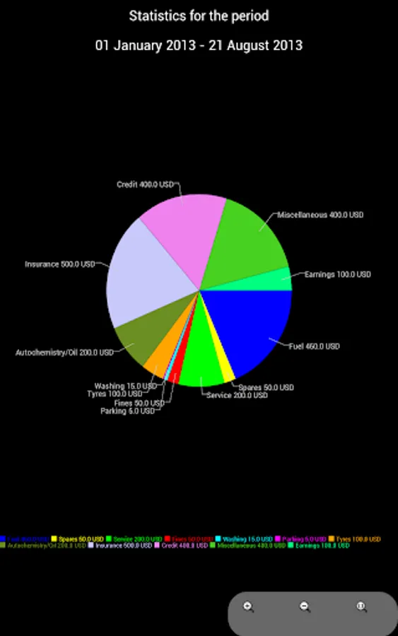 The application builds a graphical view of expenditure and earnings for any chosen period of time - you can always instantly know what it is being spent the most money.