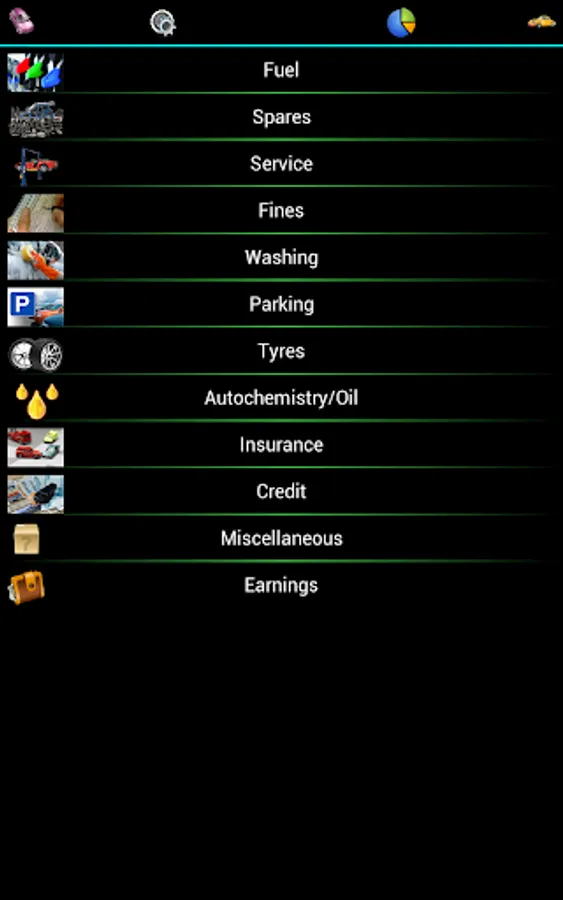 Eleven (11) expenditure categories and the category of "Earnings" account for all financial transactions that can be done with your car.