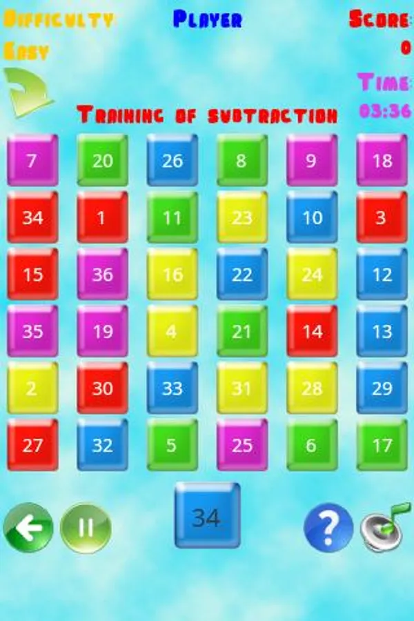 - Four levels of difficulty (easy, normal, difficult and relaxation);