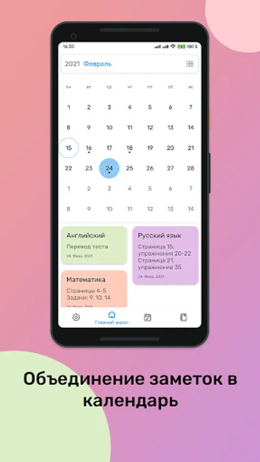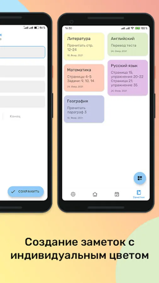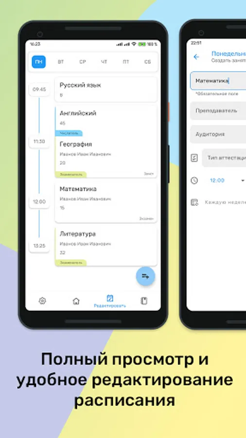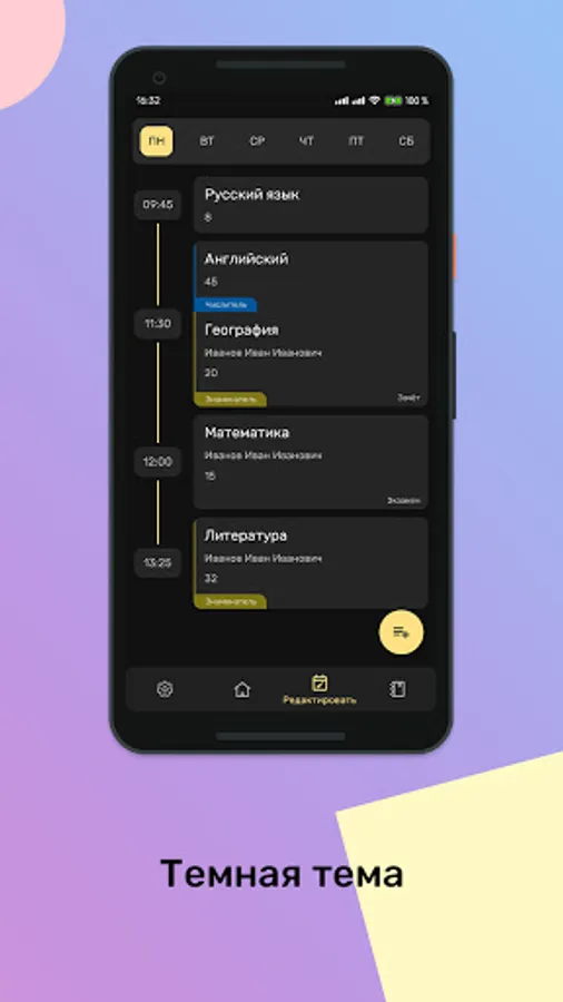 This application allows you to create an individual class schedule for each student, write down homework and leave notes for a specific date with an individual color.