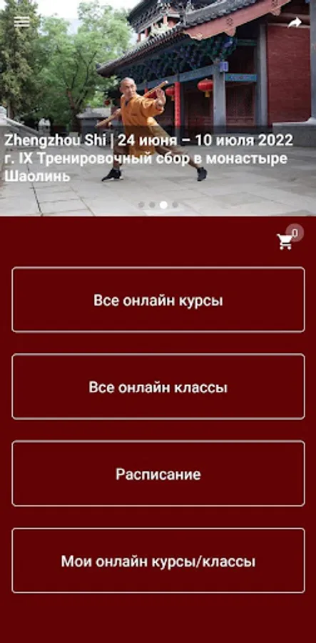Online courses in writing on Qigong and Kung Fu Shaolin, Kung Fu Xin Yi Ba are available in this application. You can purchase courses directly in the app and practice online. The app also contains the schedule of Master Shi Yanbin's School.