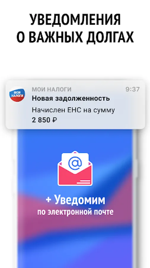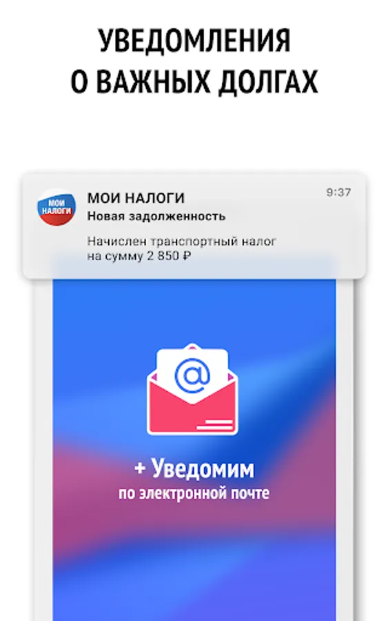 Tax debt notifications of the Federal Tax Service in the application and by e-mail.