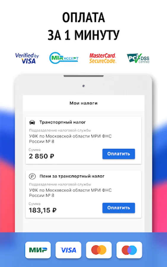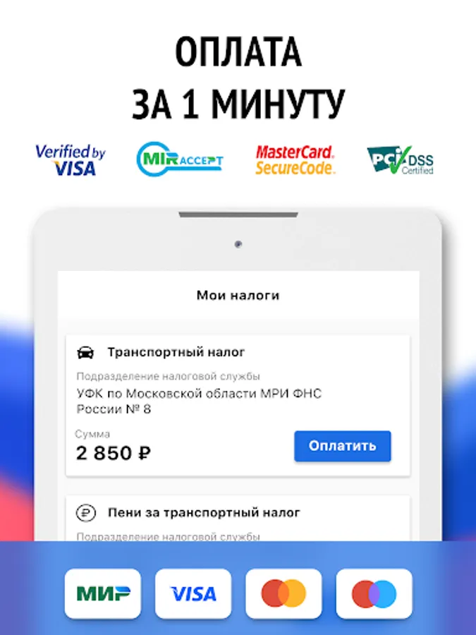 Payment of taxes by the Federal Tax Service online with VISA, MasterCard, MIR.