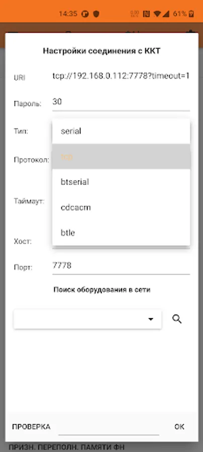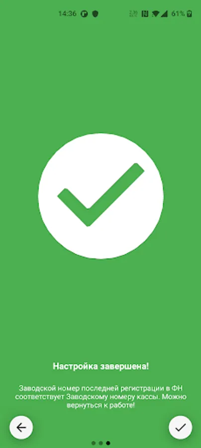 Automatic: fiscalization wizard, allows you to register a cash register or transfer settings when replacing a FN in a few simple steps.