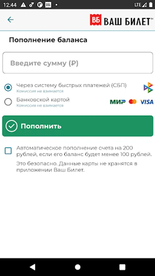 Your Ticket is a mobile application for paying for public transport. Replenish your account through the System of Fast Payments or by bank card. Pay for the fare and get an e-ticket and a cash receipt on your smartphone. Show the ticket to the driver or controller from the screen of your smartphone.