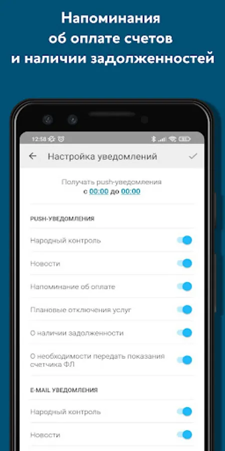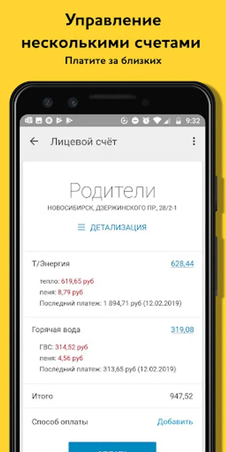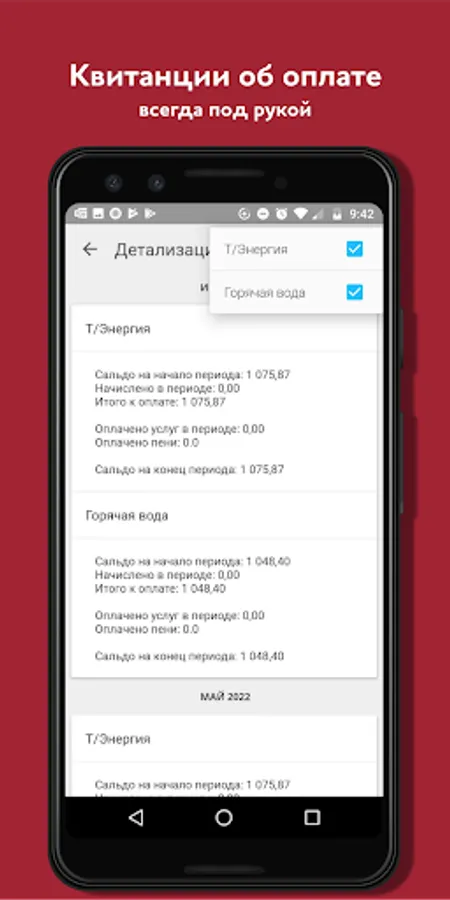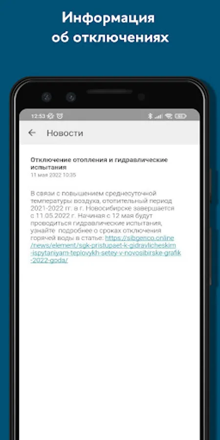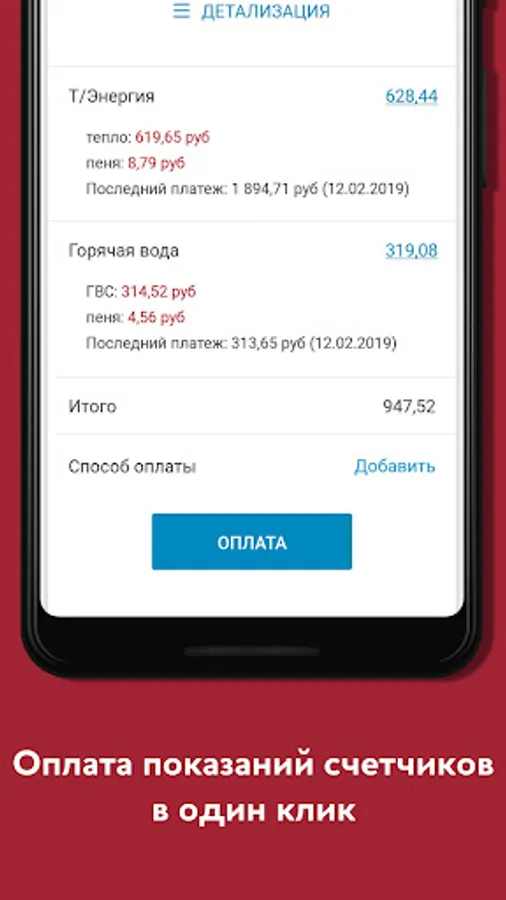 Install the application and pay for heat energy and hot water without queues and without leaving your home.