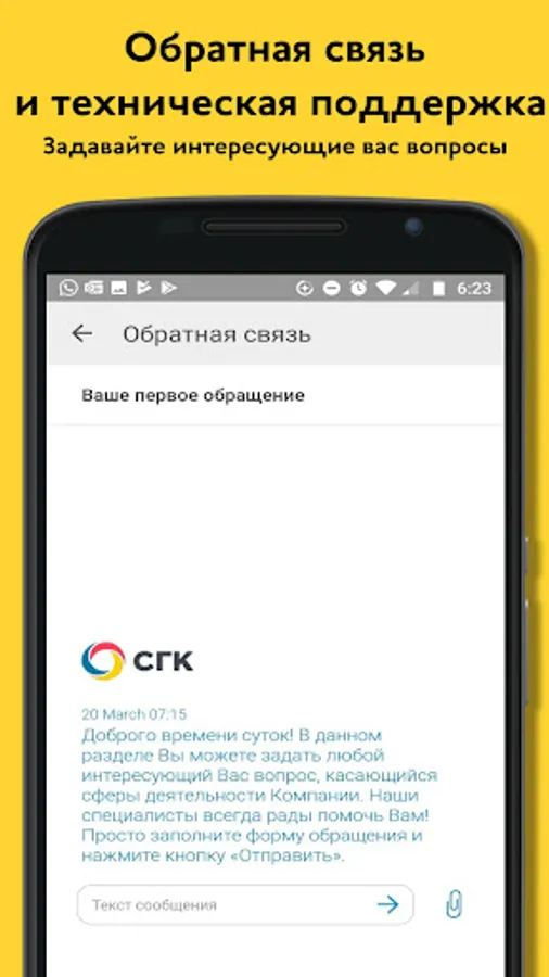 In the application, you can receive answers from the company's specialists to requests, as well as information about charges, debts, and the need to verify meters.