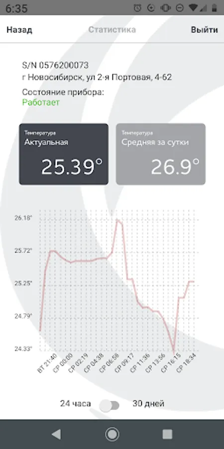 The mobile application allows you to manage data on temperature indicators of air in residential premises and monitor their deviations from the standard. It is used in conjunction with the instruments of Siberian Generating Company LLC.