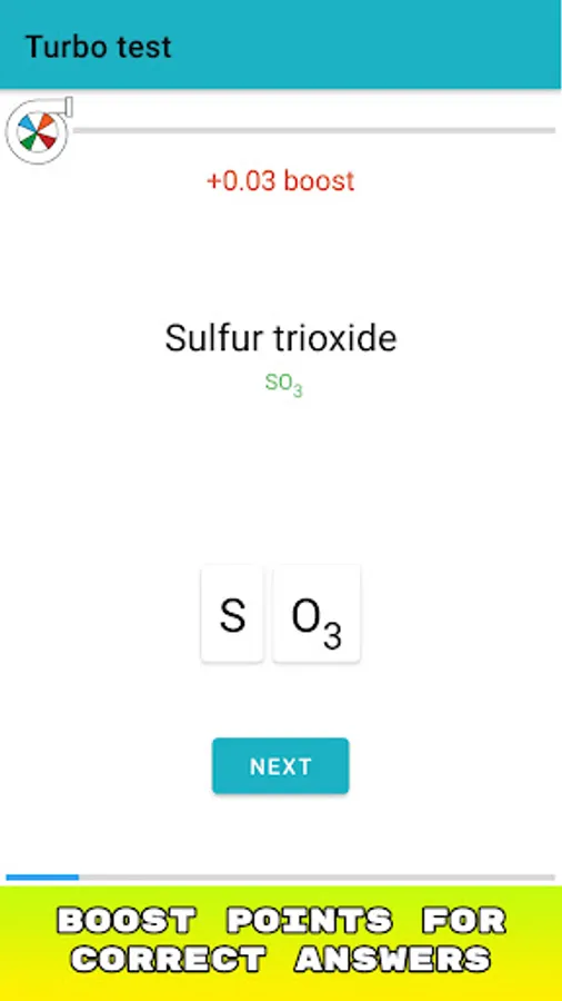 ๐ Turbo test - give the maximum boost to the turbine by answering correctly! The faster you give correct answers, the more boost! Answer 15 questions about chemical compounds.