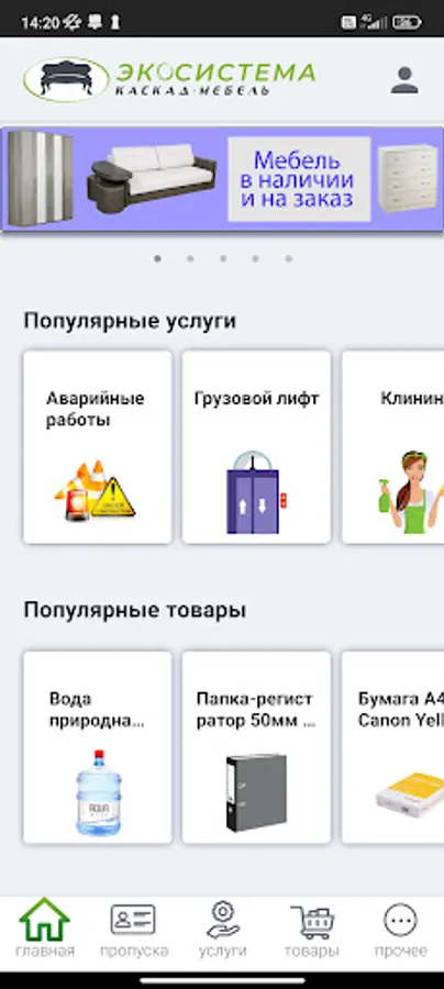 The CASCADE-FURNITURE ECOSYSTEM application makes renting an office in a business center as pleasant as possible. The application allows you to contact a BC specialist, declare your desire to order services or goods. While in the BC, using the application, the tenant can request assistance, notify the BC specialists about his arrival or waiting for guests, and receive notifications about planned events in the BC. In addition, the application allows you to receive a lot of information about new products, configure and buy products. Developed for Android.