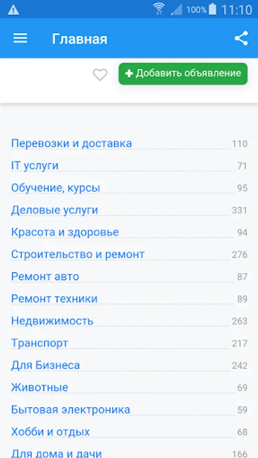 A well-thought-out structure of sections and search for ads will help you quickly find the offers you need, and the convenient navigation of the application will allow you to quickly and easily place your service on the Internet.