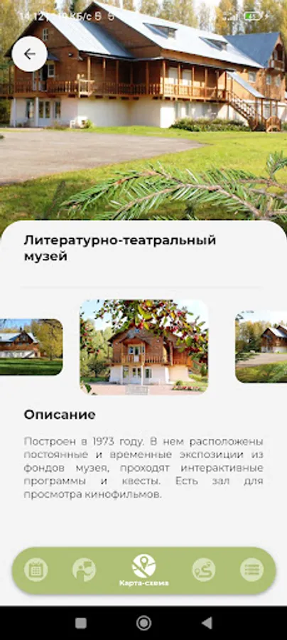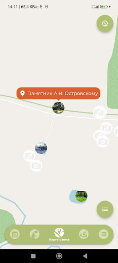 An interactive map will help you navigate the territory of the museum-reserve. You will be able to determine exactly where you are, as well as see the nearest objects and decide where to go next.