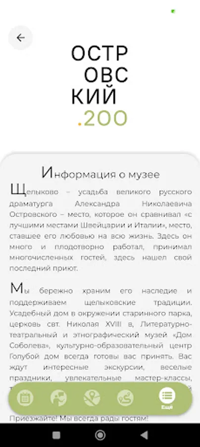 The Shchelykovo app is your personal guide and assistant when you get to know the estate of the great Russian playwright Alexander Nikolaevich Ostrovsky.