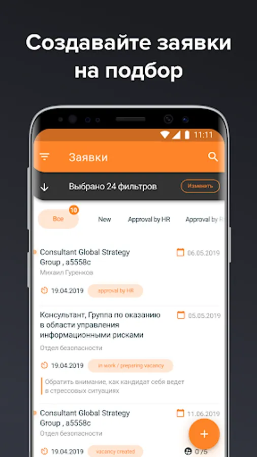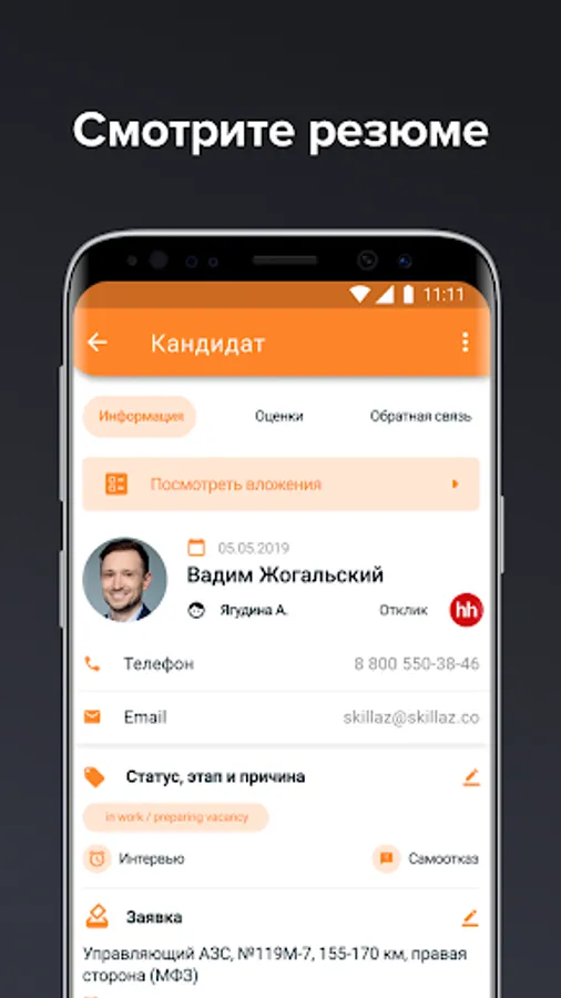 We created this application so that your work at Skillaz is no longer tied to a computer. Many simple mobile operations are faster and more convenient.