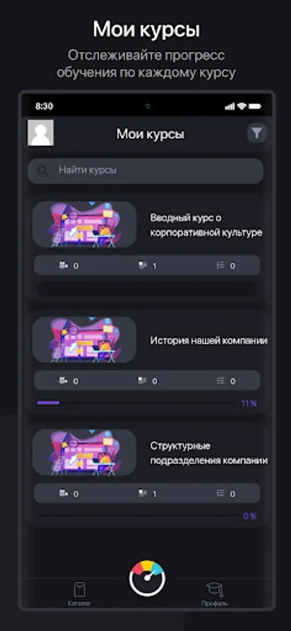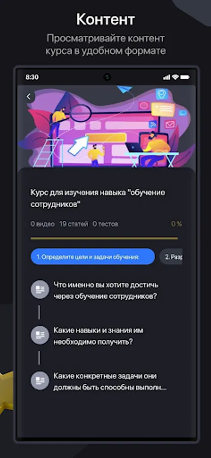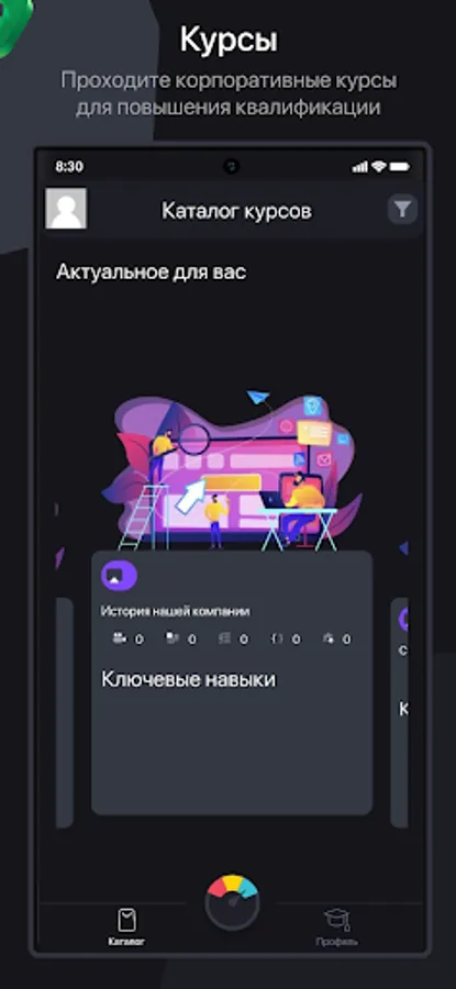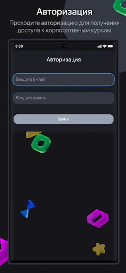 Данное приложение предназначено для проведения корпоративного обучения сотрудников