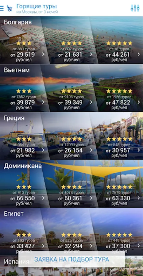 Sletat.ru - Search for tours and last minute tours from all tour operators. The official application of the service Sletat.ru.
