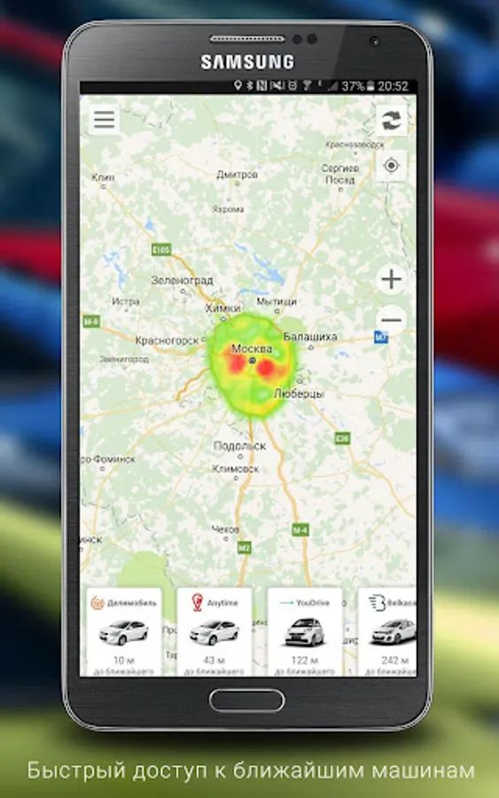 This is a first aggregator of Moscow, Saint-Petersburg and Sochi carsharing services. This app works with all Russian carsharing services (also known as "car clubs", "cars sharing", or short term car rental):