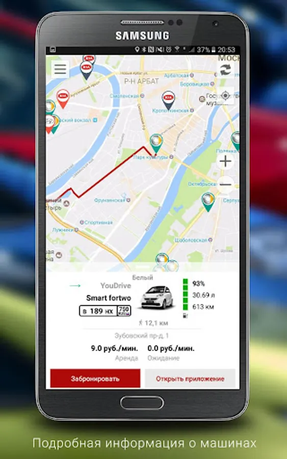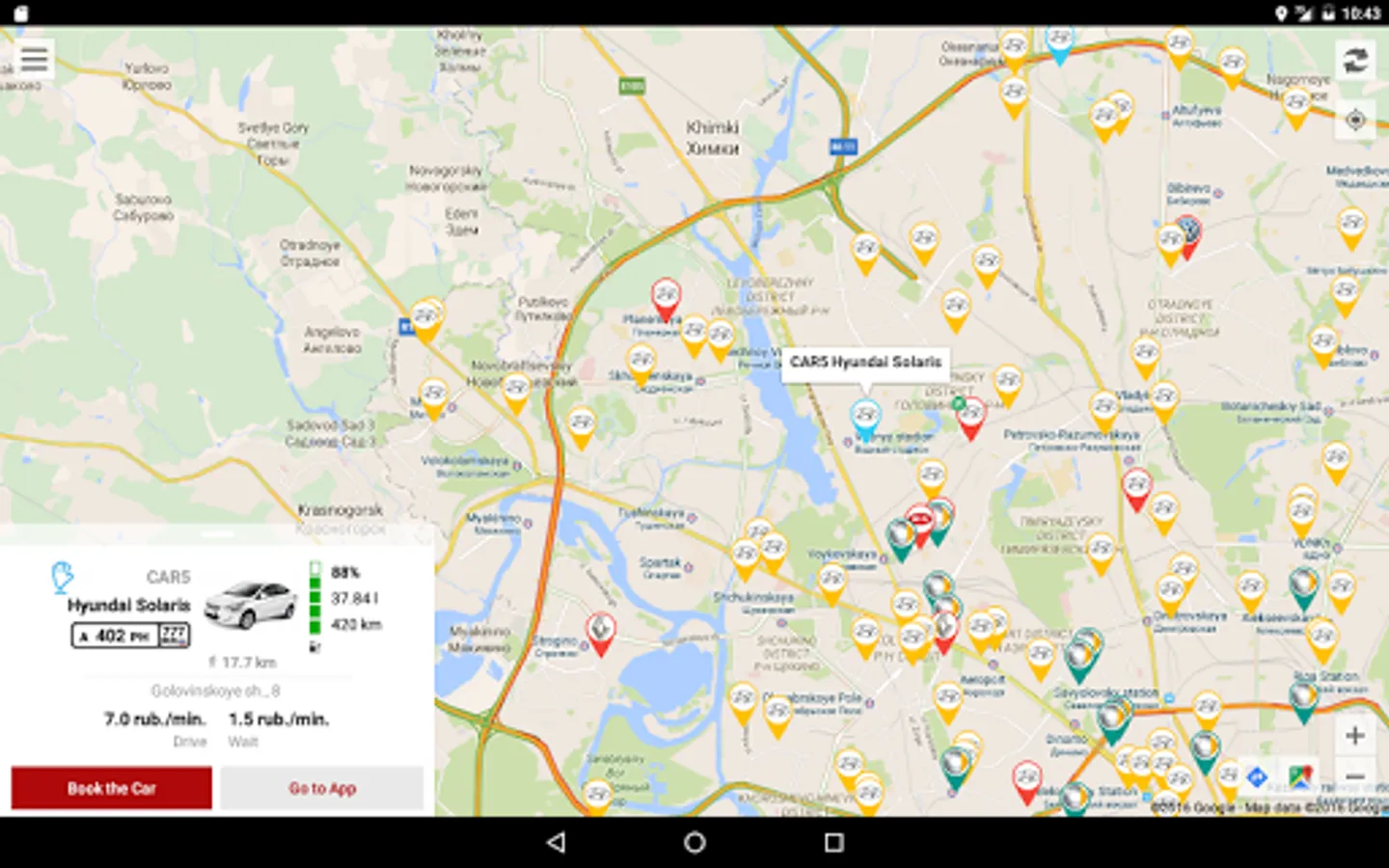 You can see all the fleet of Russian carsharings on a single map.