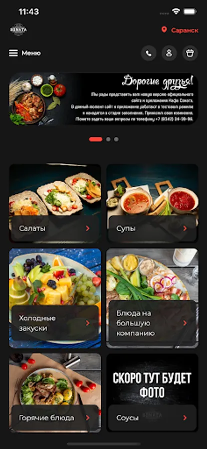 Here you can try hundreds of dishes of classical and modern European cuisine, salads, appetizers, hot meat and fish dishes, delicate desserts. The completely updated menu will be a pleasant surprise for gourmets and just lovers of quality cuisine. Cafe Sonata presents you its branded application for easy ordering food at home! Every day from 12:00 to 22:00, order food through the application, and also stay up to date with all the news and promotions of your favorite delivery service!