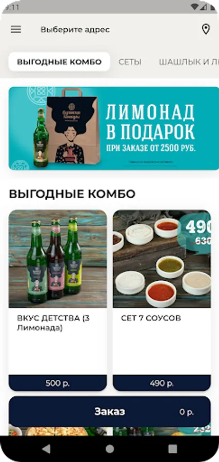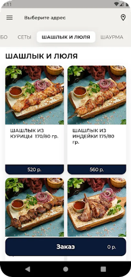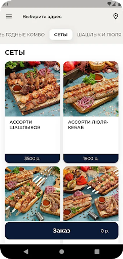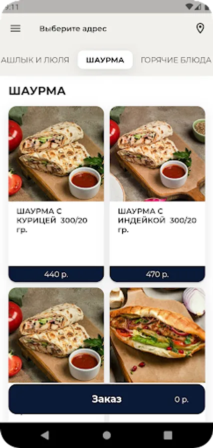 Выберите категорию блюд и добавьте блюдо в корзину;