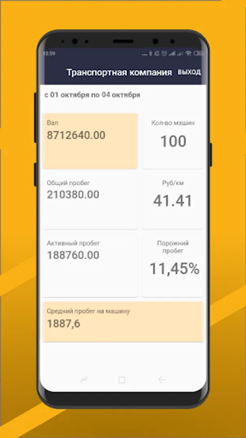 The mobile application allows you to see the main indicators of the organization.
