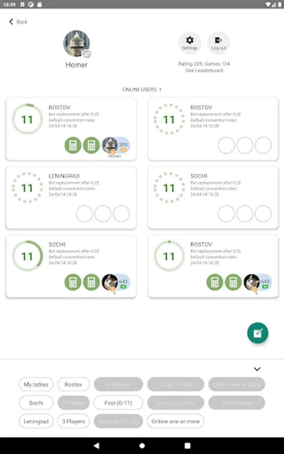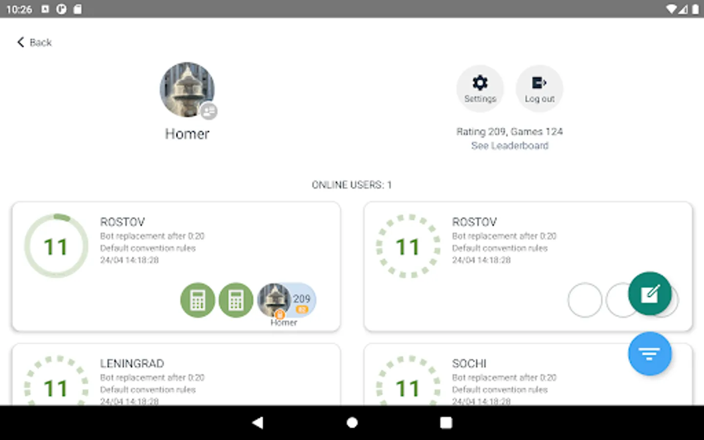 Advanced convention settings and online game with friends or pro-bots is provided with a free trial period.