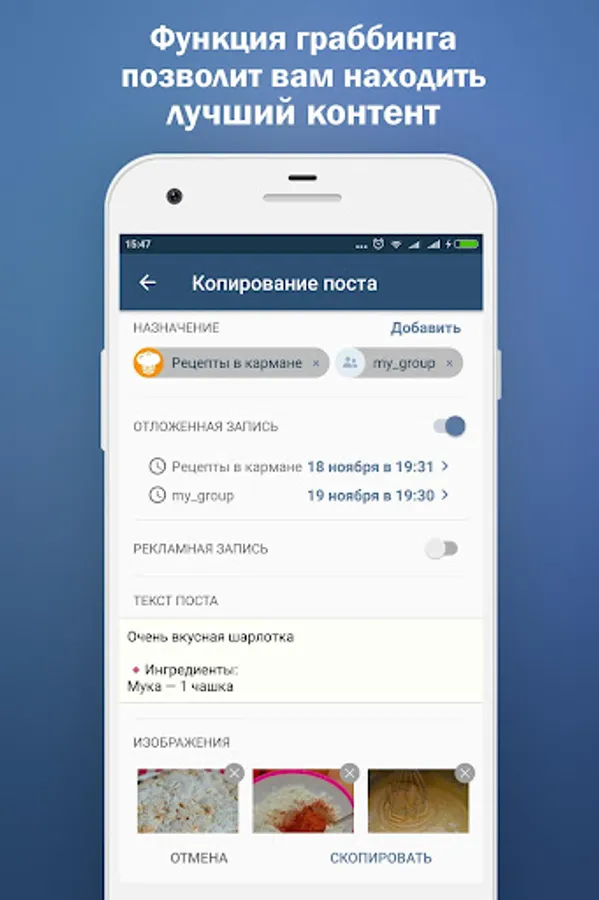 * Simultaneous copying / creating news in a few pages Vkontakte