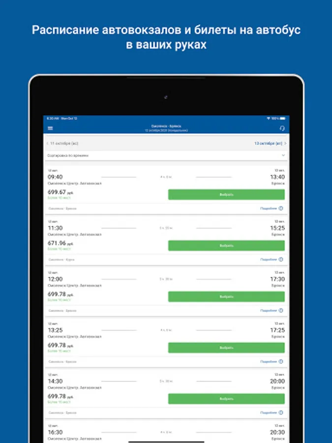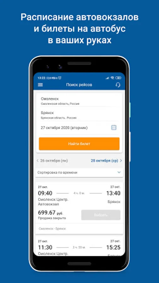 Bus schedule and tickets of the Smolensk bus station, as well as some return flights.