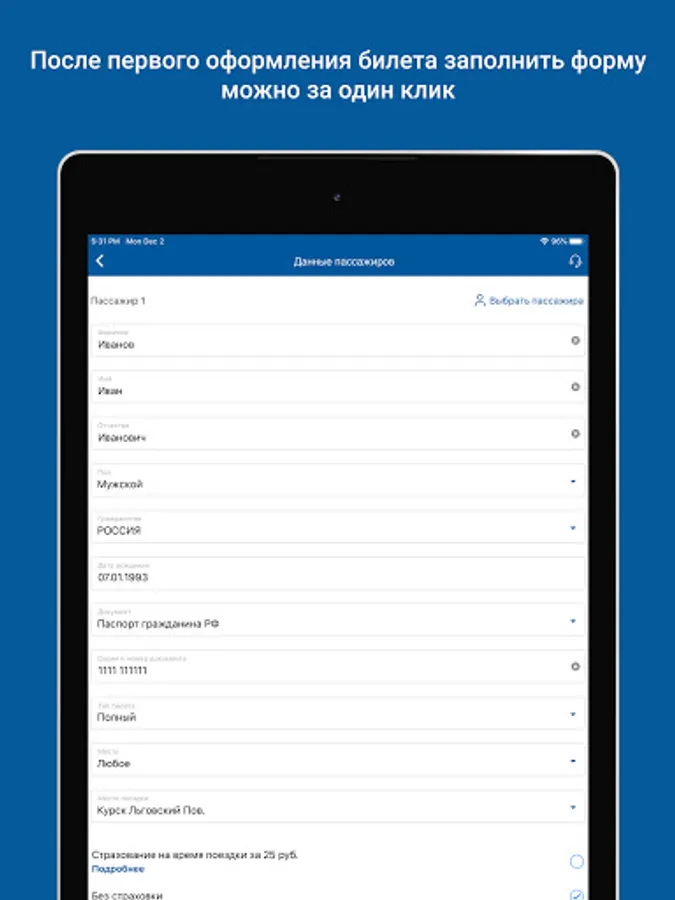 - automatic substitution of passenger data for subsequent purchases of electronic tickets