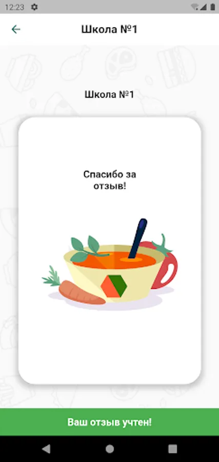 The school nutrition monitoring mobile application enables students to provide feedback on the quality of nutrition in the school. This mobile application provides the functionality of attaching a photo of a school lunch, as well as an addition to it in the form of a review