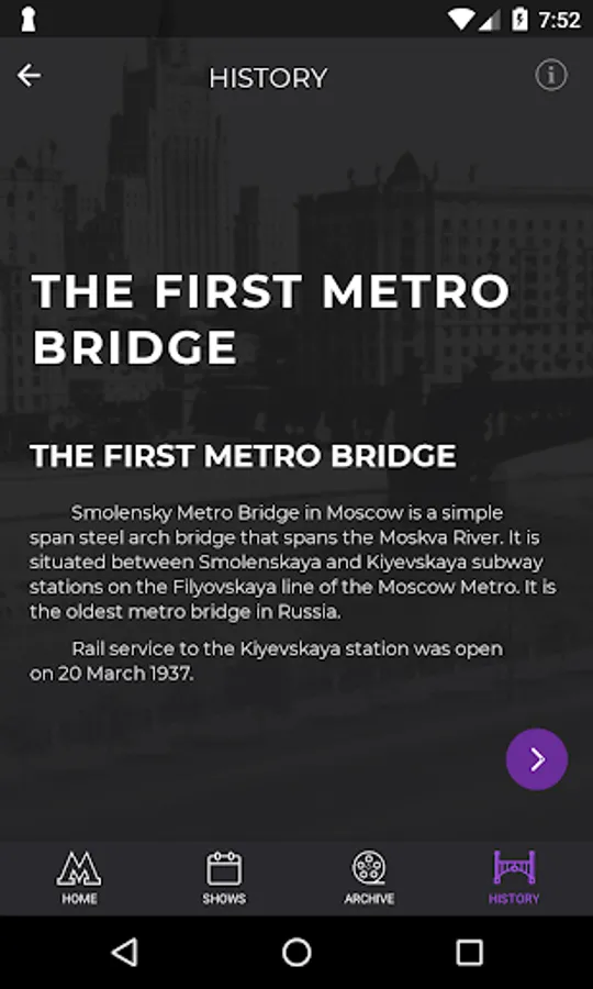 The Smolensky Bridge application is created on request of Moscow Metro SUE.