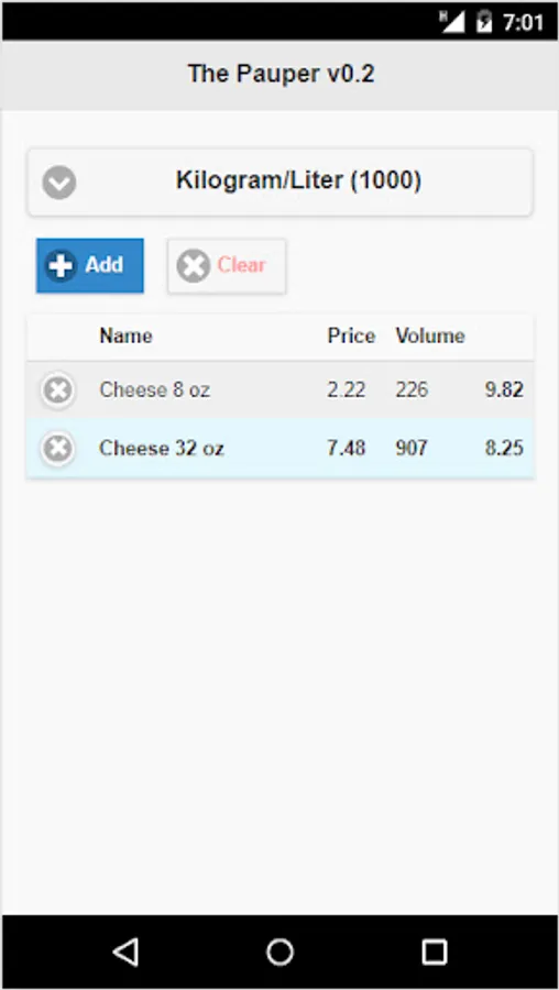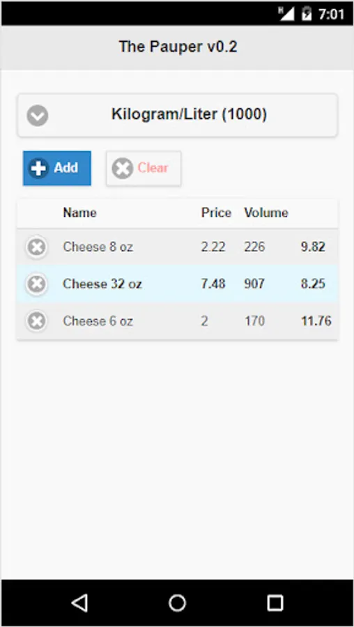 To make life easier for customers, the "The Pauper" program was developed. The most simplified interface allows, for example, to quickly compare the prices of a dozen cheeses; find out how much a large can of beer would cost, knowing only the price of a small one.