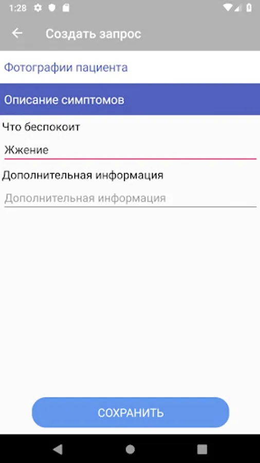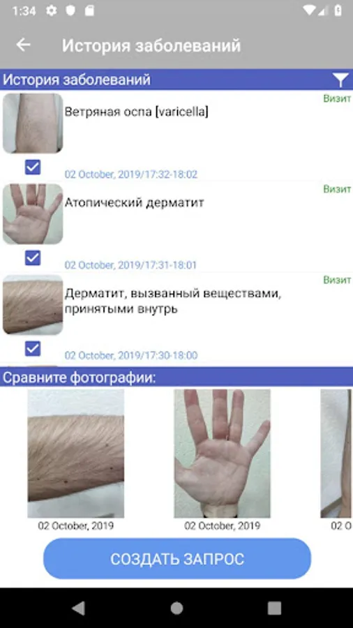 * Create a request - add a photo with clinical manifestations and a description of the symptomatology;