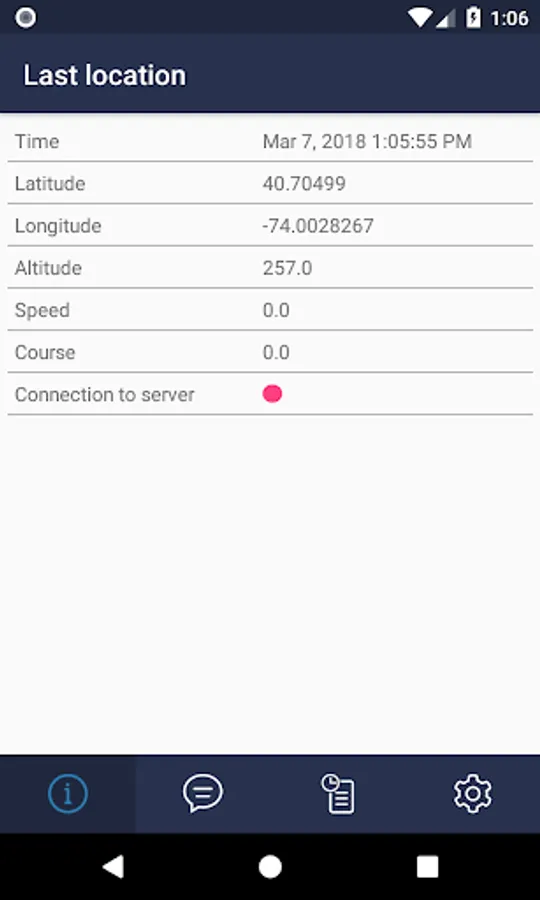 • Showing the data of the last sent location.
