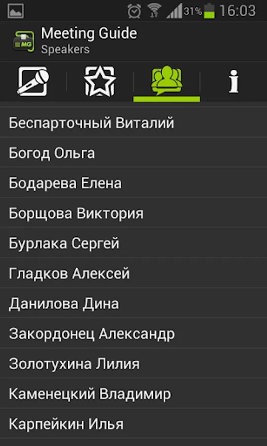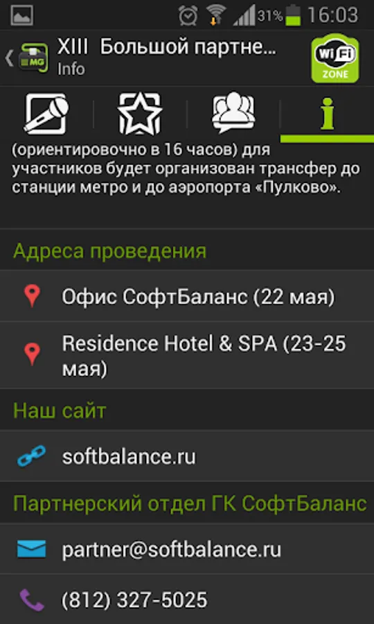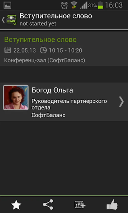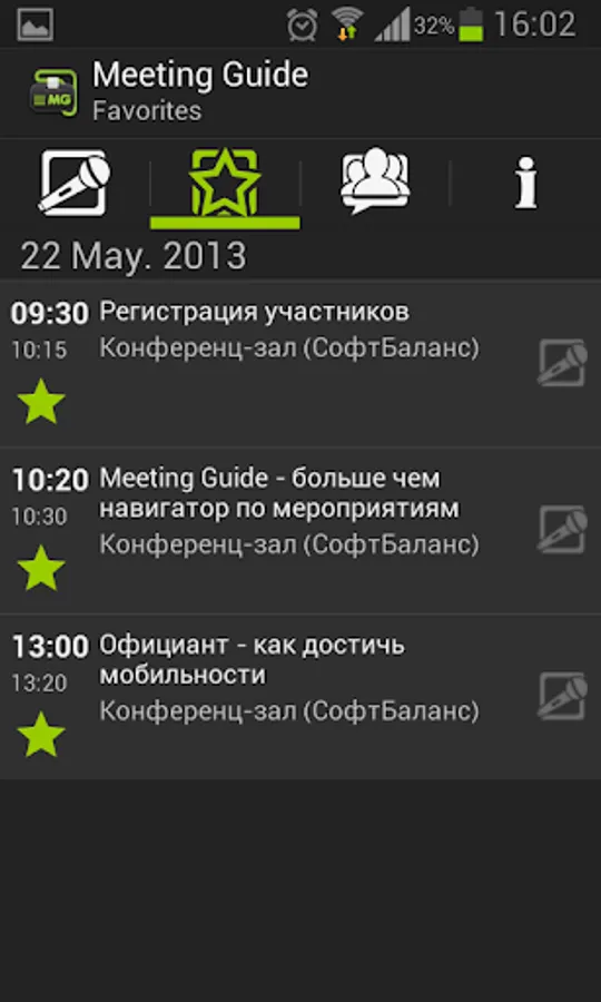 Developers GC "SoftBalance" represent Meeting Guide - application that provides access to the online schedule of seminars and conferences.