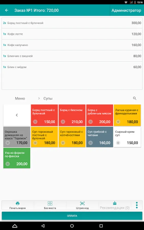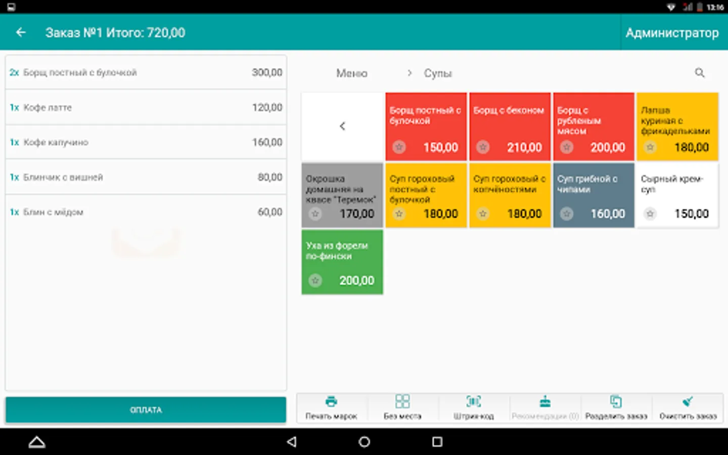 • Integration with the product accounting program Traktir: Management, Traktir: Head Office or any other program that supports the ATOL data exchange format