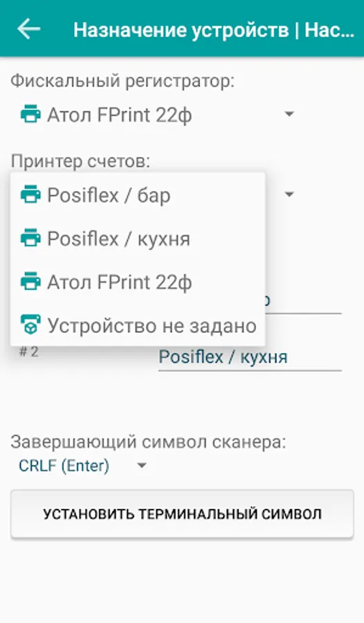 • Integration with Evotor, ATOL Sigma 10, POSCENTERBANK-1F PAX A930, connection of fiscal registrars ATOL, Shtrikh-M