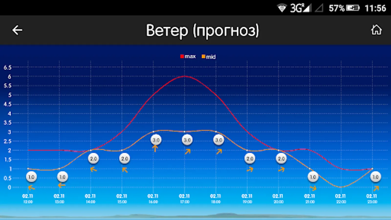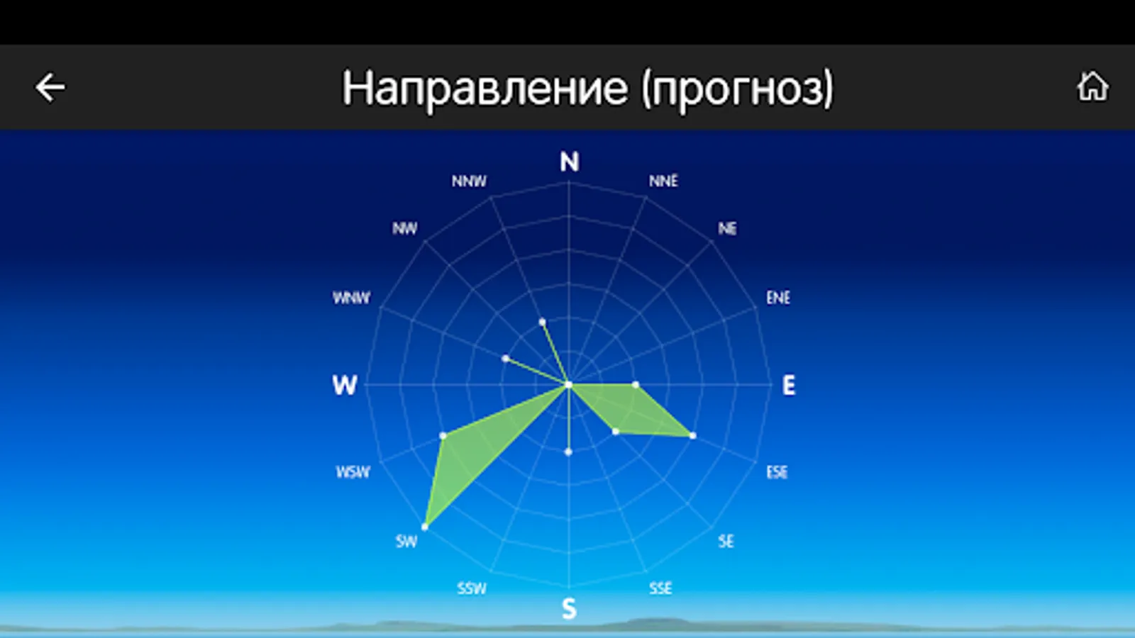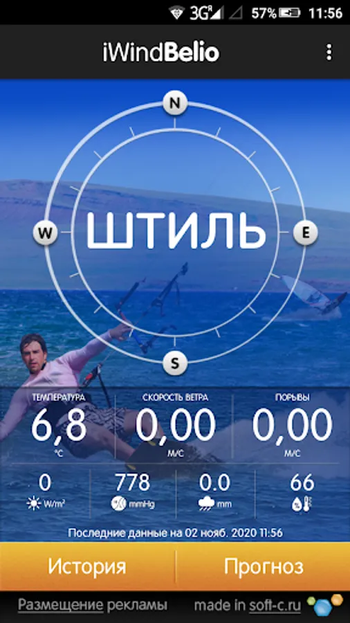 In addition to the actual data, the application displays the weather forecast for several days ahead and history wind speed and temperature.