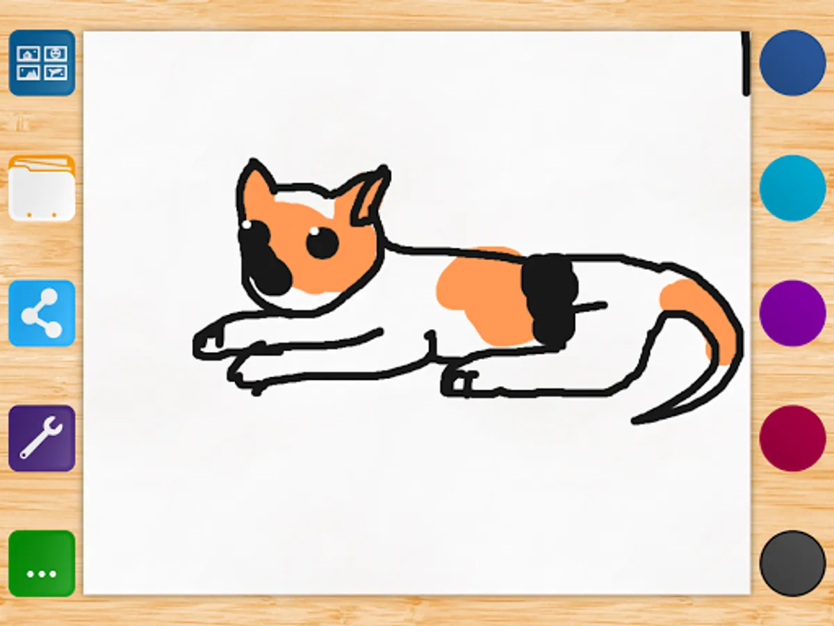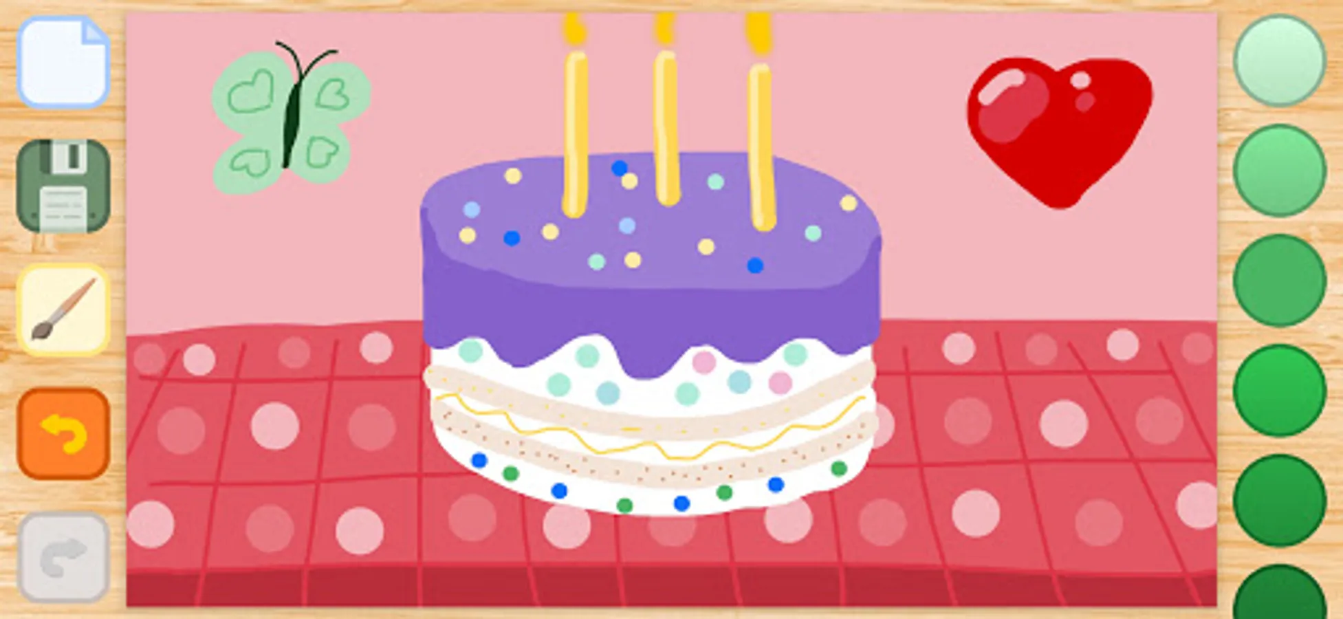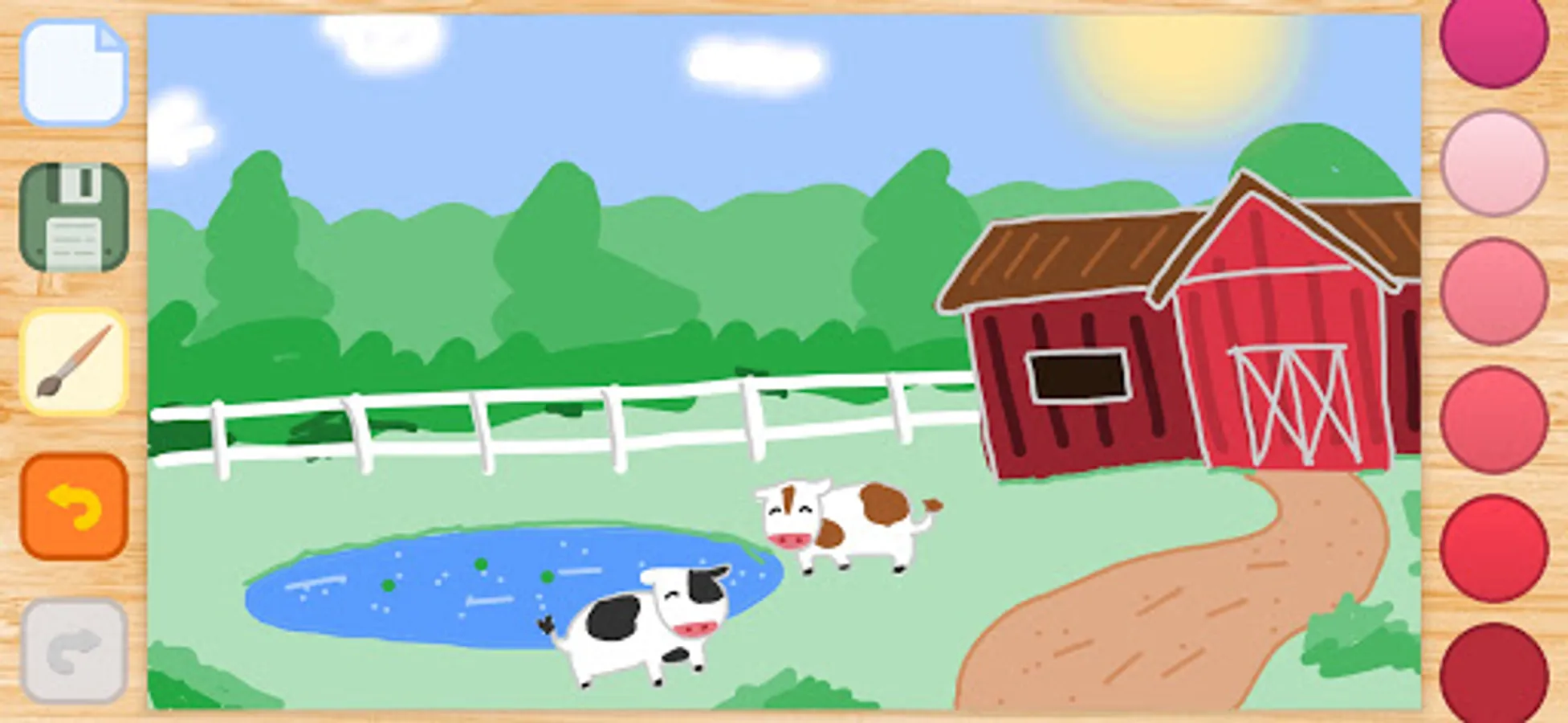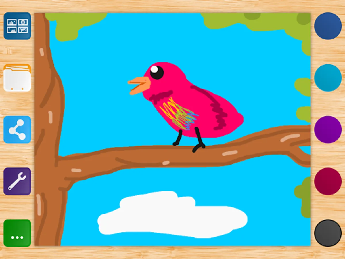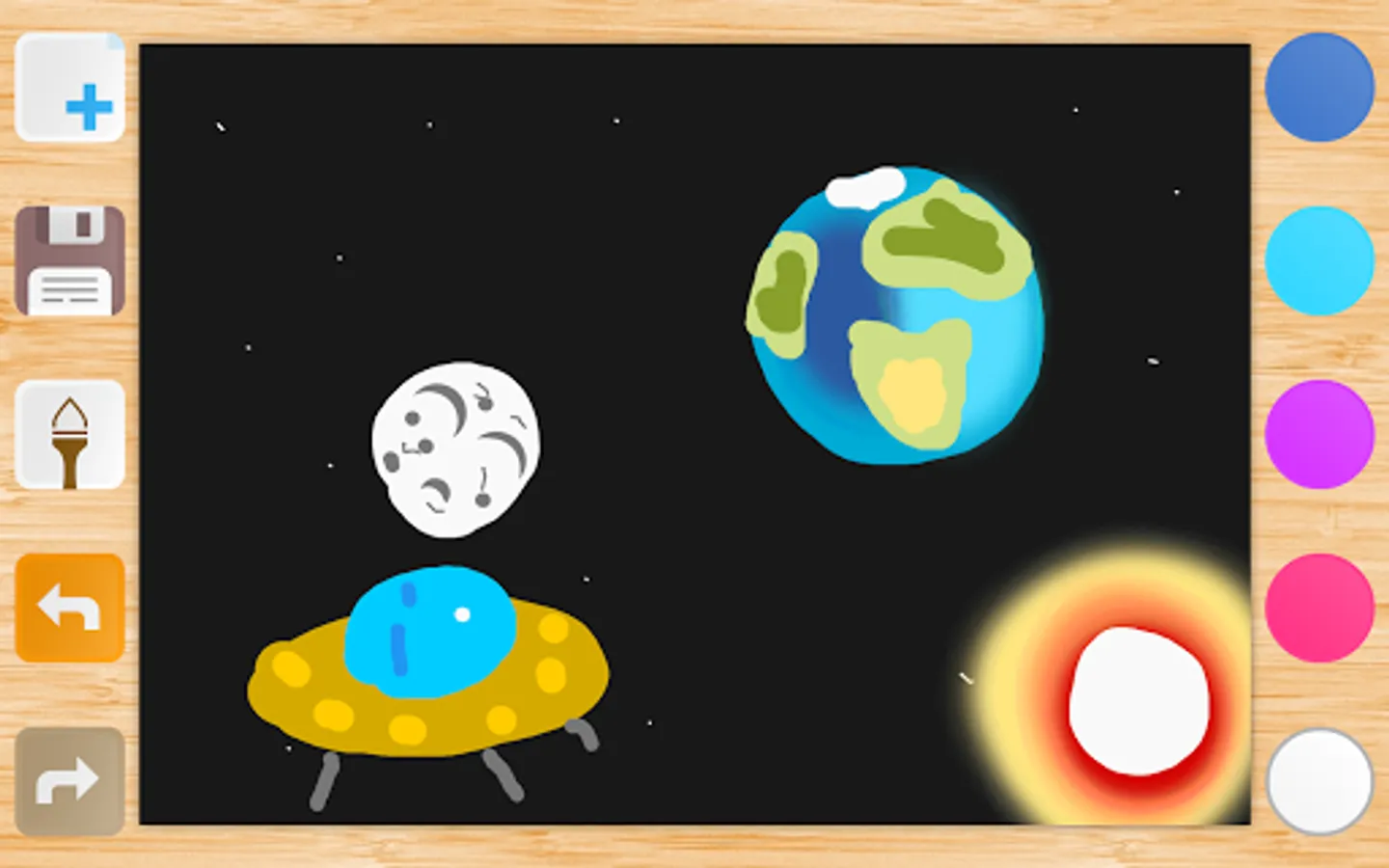 The drawing can be used as a coloring, it has a fill function. Try to draw the outlines of an object or character, turn on the fill mode and let the child paint over. This can be a lot of fun!