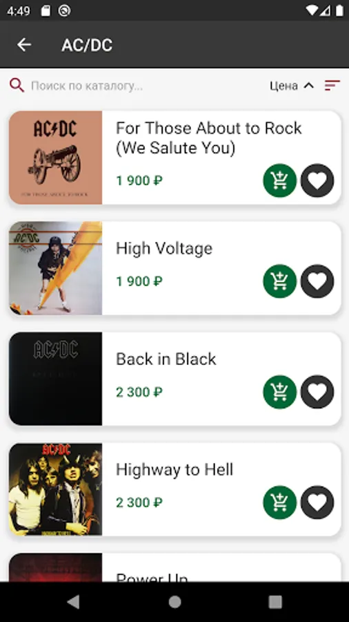 In this mobile application you can view the catalog of available vinyl records and pre-order them. The following genres are presented in our catalog: