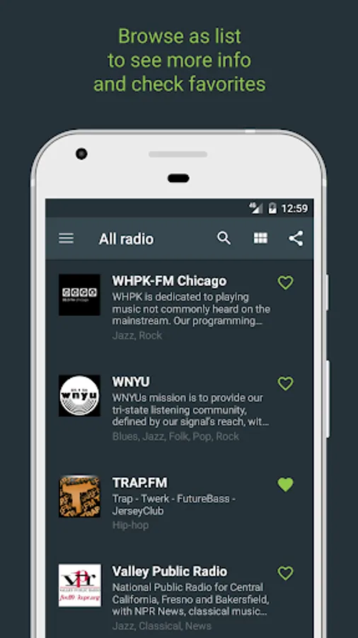 ► Favorite stations on the start screen — add widgets to the start screen for quick access to the stations.
