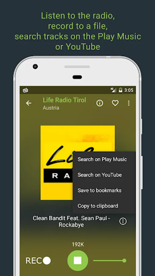 ► Choose stream quality. If station provide different streams you can choose lower data traffic or higher sound quality.