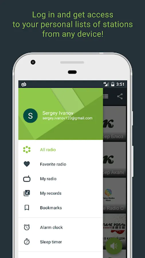 ► Keep your data in the cloud — if you are authorized, the lists of favorites and your own stations will be stored on the server. When authorizing from another device, all of your data will be restored automatically.