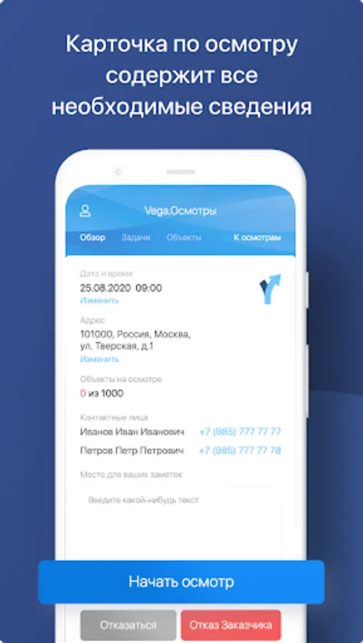 The service allows you to create inspections, appoint a responsible executor, work with both full-time and freelance performers, describe additional tasks.