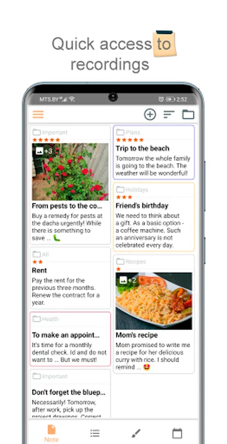 3) Reminder that can be set for your data (notes, lists, calendar). For reminders, you can also set the repeat interval (every day, every week, every month).